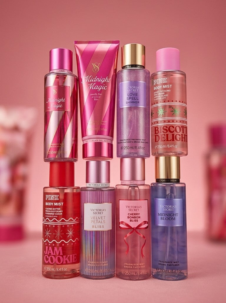 Descubre la magia de Victoria's Secret/PINK en una caja emprendedora diseñada para ti. Este conjunto exclusivo reúne los aromas más cautivadores: Midnight Magic Mist y Cream para una experiencia sensorial completa, acompañados de seis body mists irresistibles: Love Spell, Biscotti Delight, Jam Cookie, Velvet Petal Bliss, Cherry Bonbon Bliss y Midnight Bloom. Cada fragancia cuenta una historia diferente. Desde notas dulces y gourmand hasta florales delicados, tienes todo lo que necesitas para expresar tu personalidad en cada momento del día. Perfecta para regalarte a ti misma o sorprender a alguien especial, esta colección te permite explorar aromas premium sin comprometer tu presupuesto. Acadia te trae lo mejor de Victoria's Secret/PINK: calidad garantizada, fragancias duraderas y ese toque de lujo que mereces. ¡Invierte en ti misma hoy!